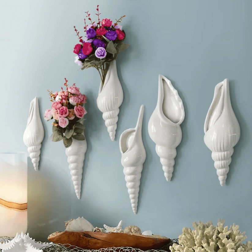 The Wall Hanging Shell is a ceramic vase that adds elegance and function to any space. It holds water for flowers or plants and is easy to install, making it perfect for home, cafes, or restaurants. Stylish and versatile, it enhances any room’s décor.